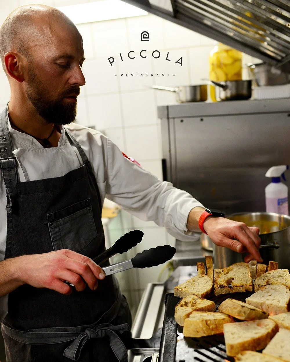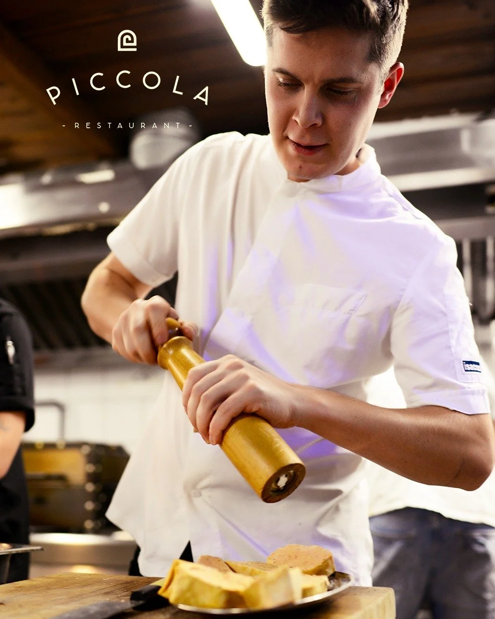 Máté és Csabi - A Piccola konyháját két séf közös látásmódja formálja. Tradíció és innováció találkozik, helyi alapanyagokkal és mérnöki pontossággal. Fogásaikban a tiszta textúrák és karakteres ízek elegáns párbeszéde bontakozik ki.