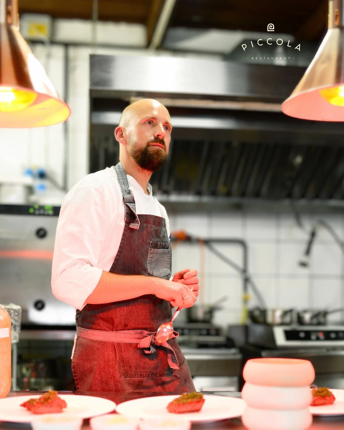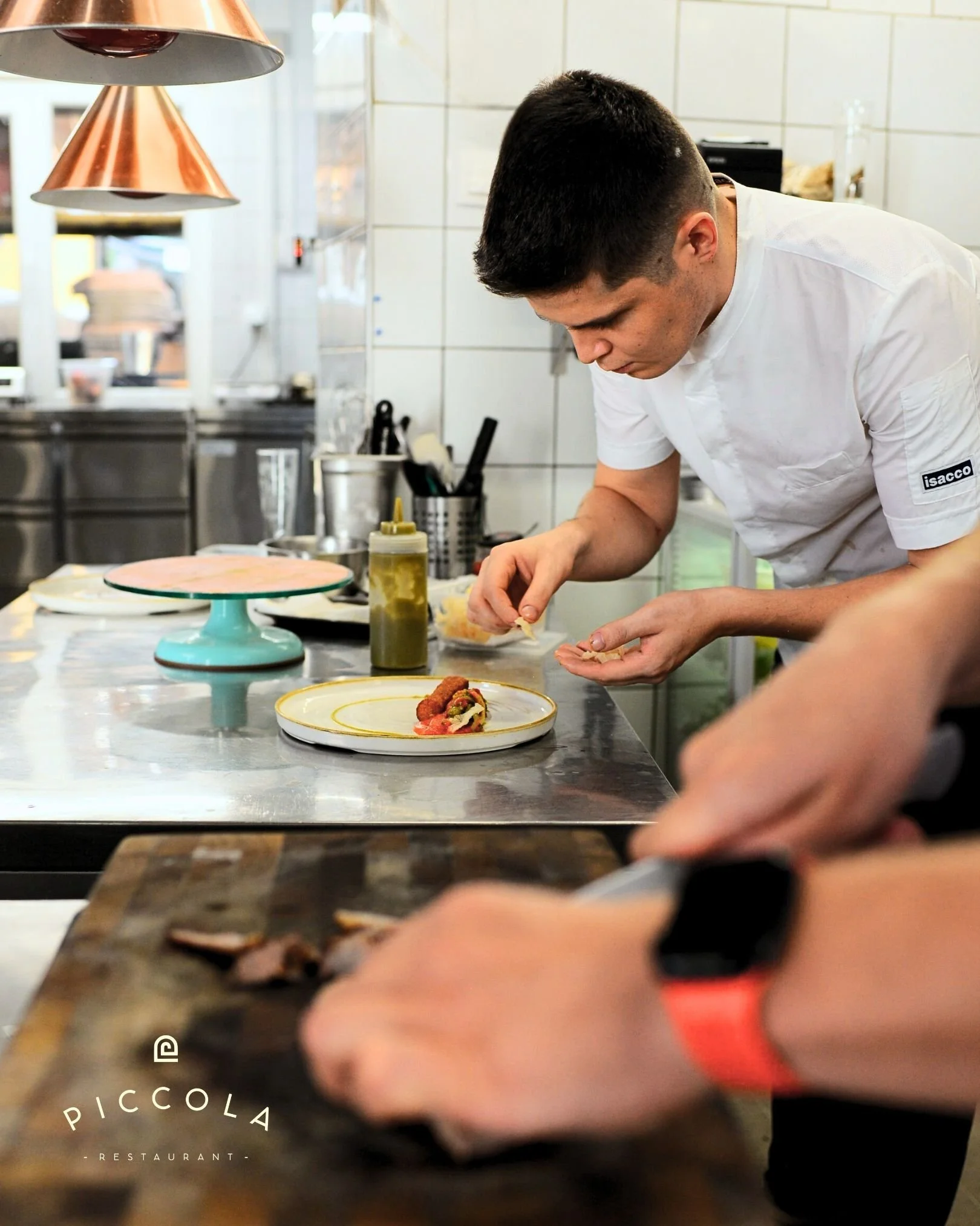 Máté és Csabi - A Piccola konyháját két séf közös látásmódja formálja. Tradíció és innováció találkozik, helyi alapanyagokkal és mérnöki pontossággal. Fogásaikban a tiszta textúrák és karakteres ízek elegáns párbeszéde bontakozik ki.